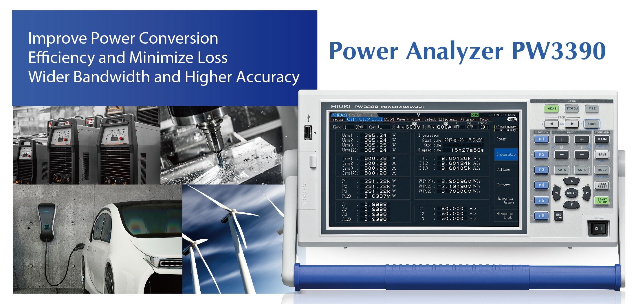 Currently the demand for electrical devices used in energy conservation and alternative energy applications is reaching unprecedented levels, for example solar panels, electric vehicles, motors, and inverters. As they work to develop such devices, manufacturers pursue improvements in energy conversion efficiency on the order of 0.1%. Analysis of motors used in electric vehicles (EVs) and hybrid electric vehicles (HEVs) provides an example of such improvements. EVs and HEVs use a battery to power a motor but at the same time they also control the motor with an inverter for maximum efficiency. By measuring power between the battery and inverter, and between the inverter and the motor, and then performing a comparative analysis of the two quantities, it is possible to ascertain the energy conversion efficiency. Demand for the ability to measure conversion efficiency of power conditioners used in solar power systems is also increasing.